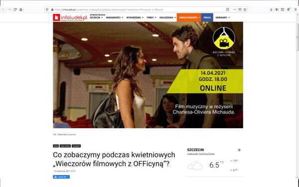 Nowa formuła Wieczorów Filmowych z OFFicyną - Damian Romaniak (wywiad w Radio Trójka)
