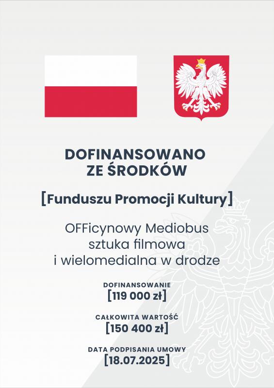 Dofinansowano ze środków Ministra Kultury i Dziedzictwa Narodowego pochodzących z Funduszu Promocji Kultury– państwowego funduszu celowego.