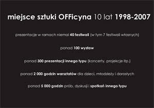 Impreza zapowiadała rok jubileuszowy. Jednodniowe przedsięwzięcie zaprezentowało wybraną dokumentację dotychczasowych działań, projekty własne miejsca sztuki oraz ówczesny stan działalności Ośrodka.