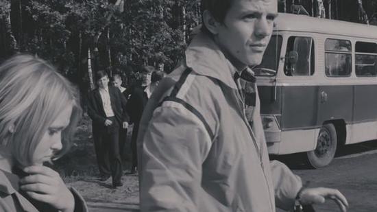 Grupy podchmielonych chłopaków zbiera się do odjazdu, podobnie jak biwakująca para, Ewa i Andrzej. Między nimi – niby dwoma światami – krąży, niczym wojerysta, milczący, nieco wyobcowany z grupy chłopak. W etiudzie widać inspiracje Kieślowskiego francuskim kinem Nowej Fali, a zwłaszcza filmami Godarda czy Truffaut.